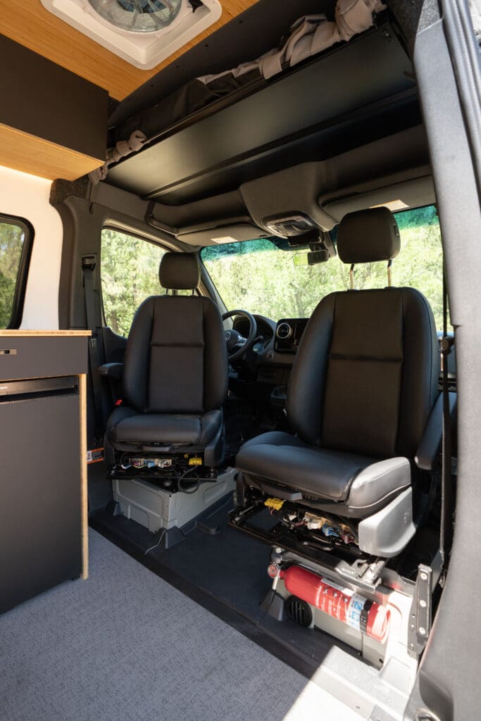 The swivel seats add flexibility and comfort to your Bear Peakβ living space. Effortlessly rotate the driver and passenger seats to create a functional lounge or dining areaβmaximizing space and usability on every trip.