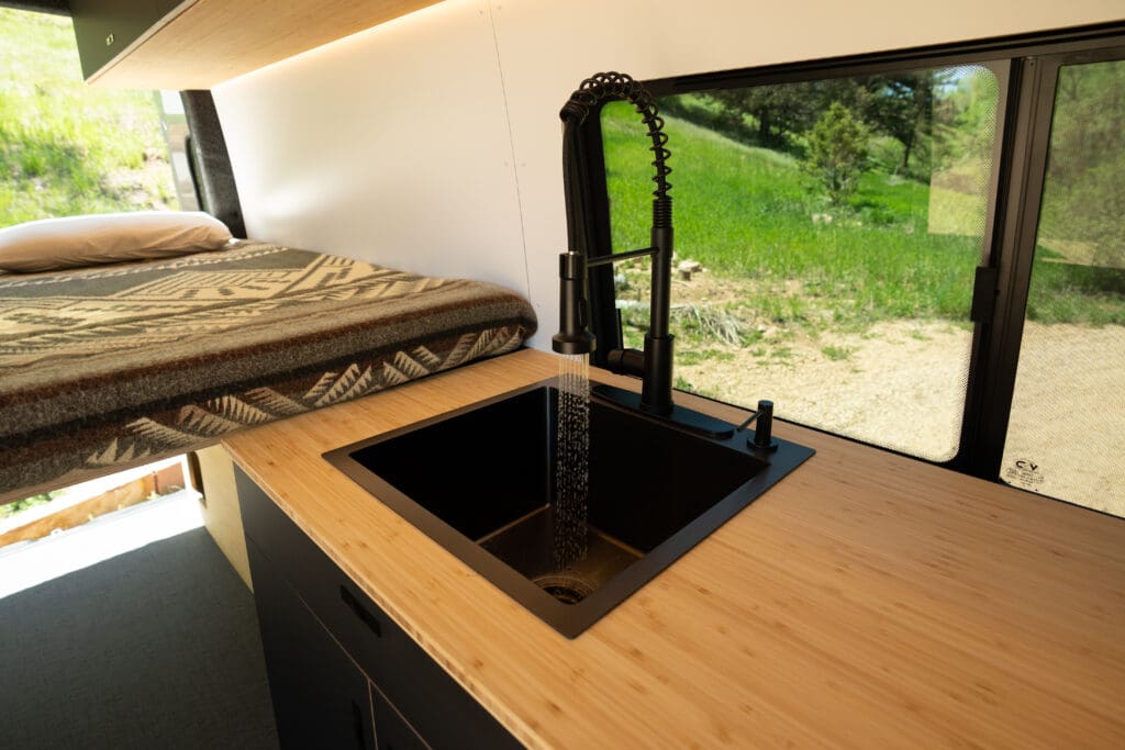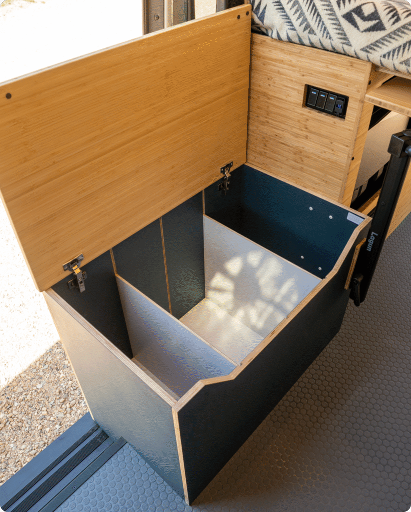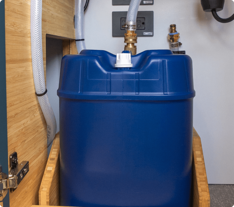 The 5-gallon gray water tank is compact and efficient, ideal for shorter trips or minimalist setups. It neatly collects sink and shower runoff, making cleanup simple while keeping your Bear Peak eco-friendly and road-ready.