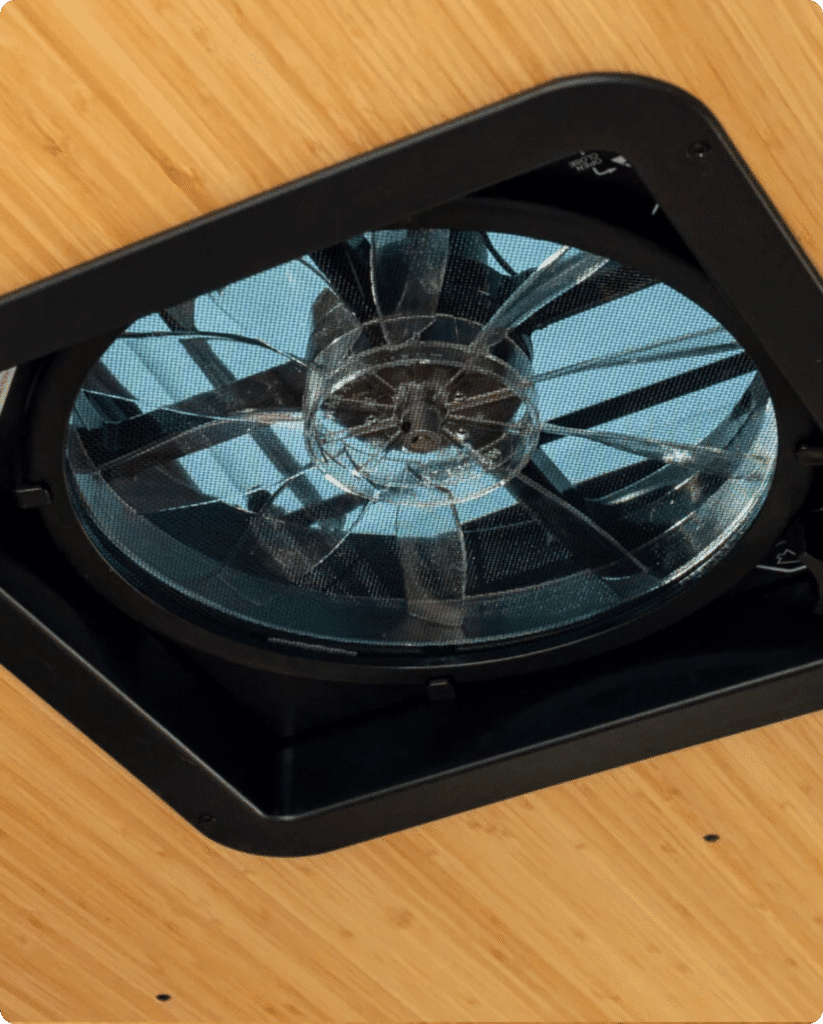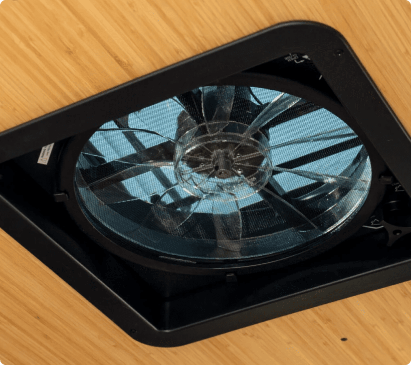 The front MaxxAir fan keeps your Bear Peak cabin fresh and comfortable. With adjustable speeds and reversible airflow, it quietly circulates air to regulate temperature and reduce moistureβperfect for restful nights and breezy days on the road.