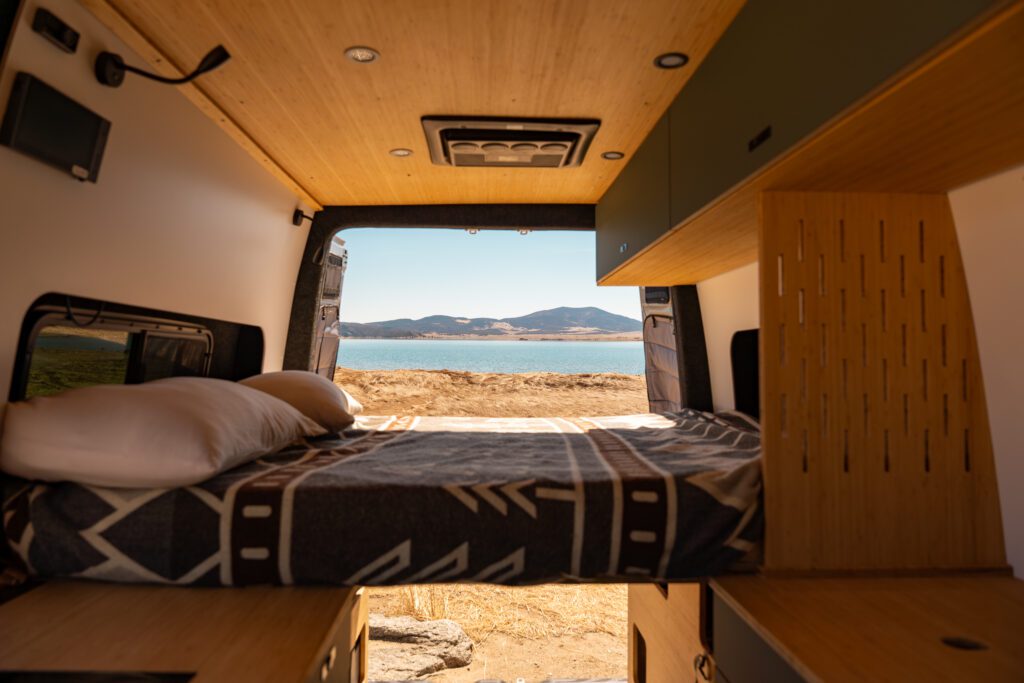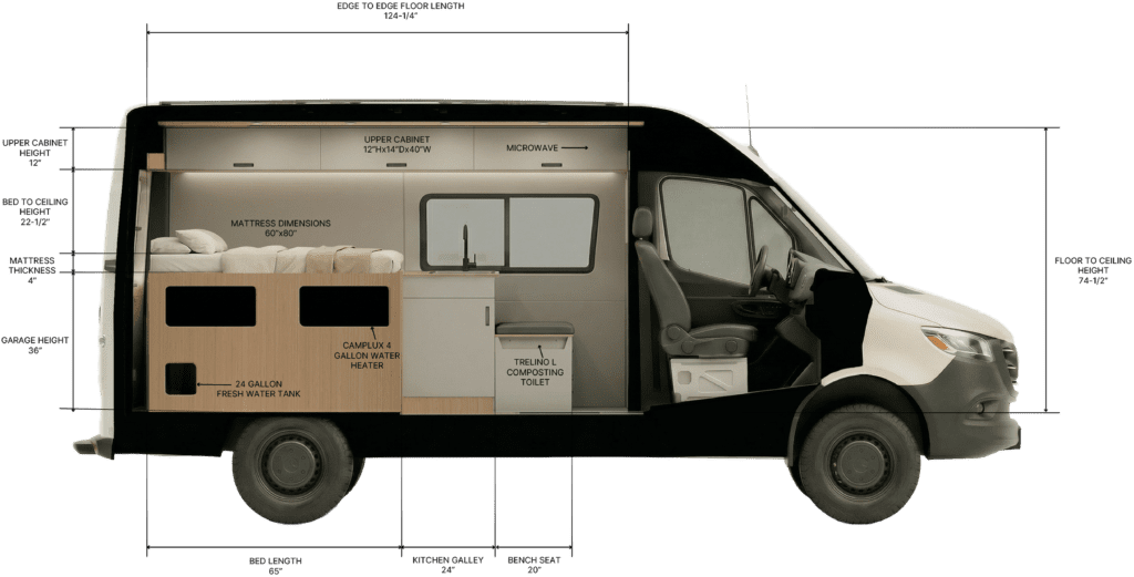 The split galley and east-west bed open up the center of the van, giving you room to cook, move, and spend time together without getting in each otherโs way.