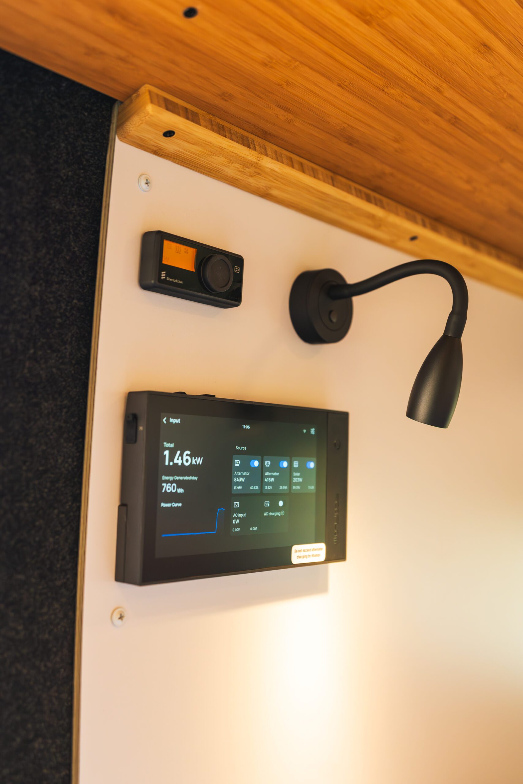 The Espar diesel heater provides efficient, reliable heat for cold weather and high-elevation travel.