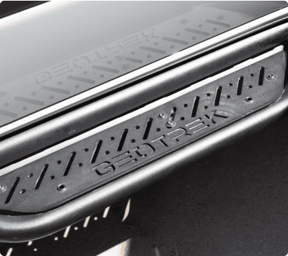 The running boards provide safe, easy entry and exit while adding a sleek, functional touch to the Flatiron’s exterior. Built for durability and traction, they’re designed to handle mud, rain, and rugged terrain with confidence.