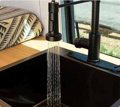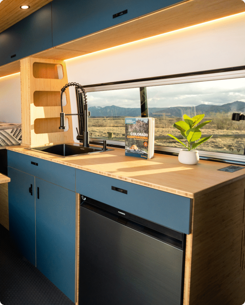 The 22-gallon gray water tank provides ample capacity for extended off-grid travel. Designed for durability and easy drainage, it efficiently collects sink and shower runoff—keeping your adventures clean, convenient, and eco-friendly.