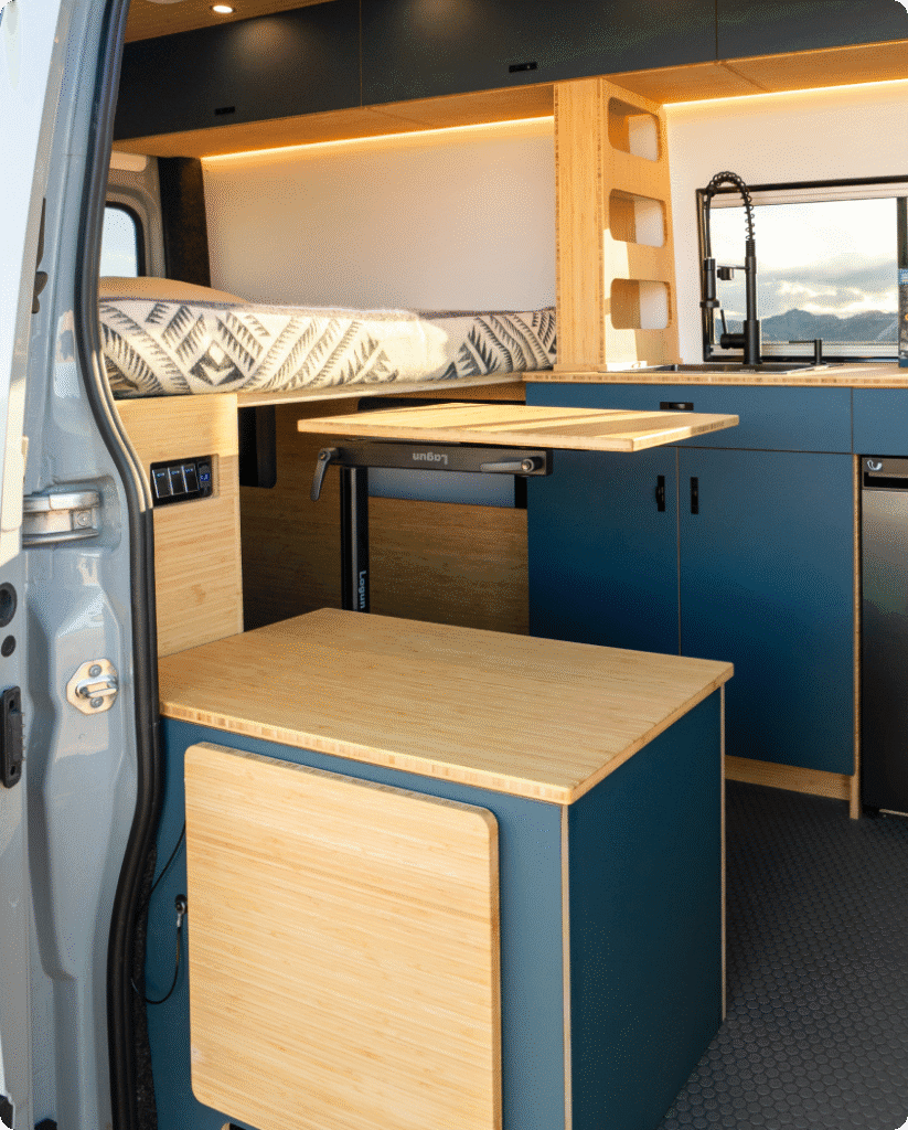 With a 10kWh EcoFlow system, outdoor shower, all-season insulation, and expanded water storage, it’s built for longer stays, remote work, and van lifers who want comfort without compromise.