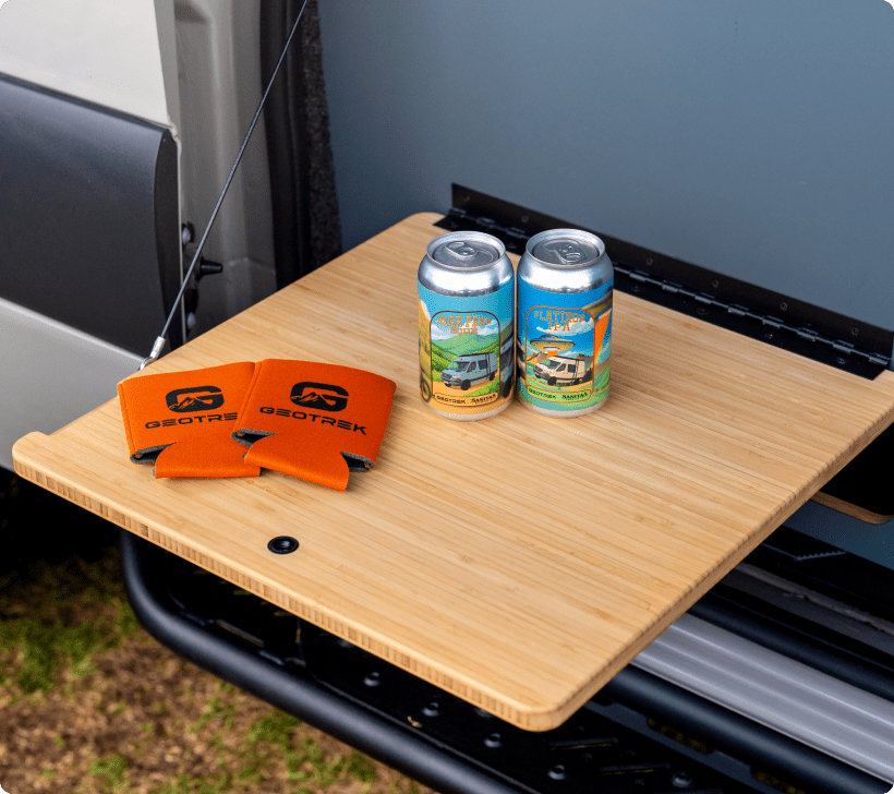 The fold-down table adds instant versatility to your Flatiron’s interior. Perfect for dining, working, or prepping gear, it stows flat when not in use—maximizing space without sacrificing function.