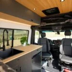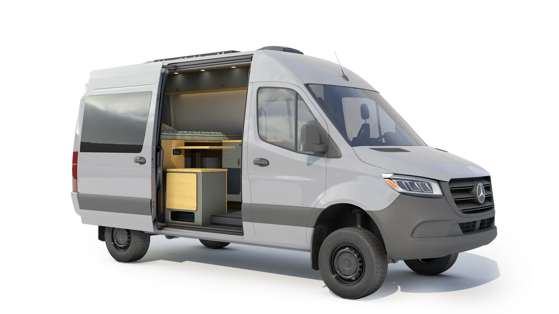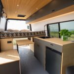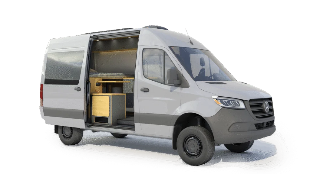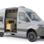 The Geotrek Albatross layout is designed for optimal space efficiency, featuring a functional kitchen, convertible bed system, and ample gear storage for extended adventures. Built on the AWD Sprinter 144 chassis, it offers a perfect balance of comfort and capability for off-grid travel and vanlife enthusiasts.