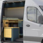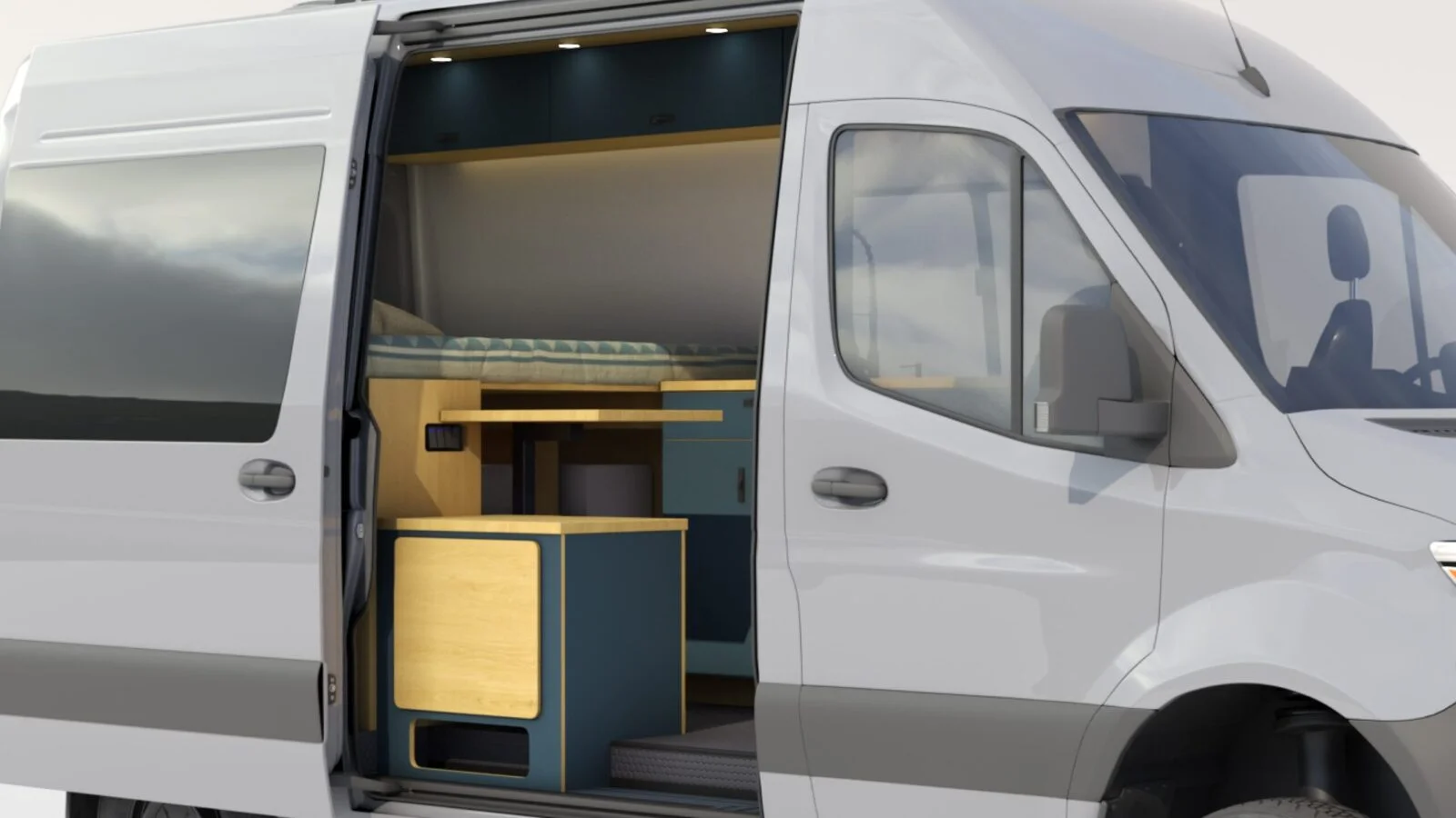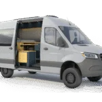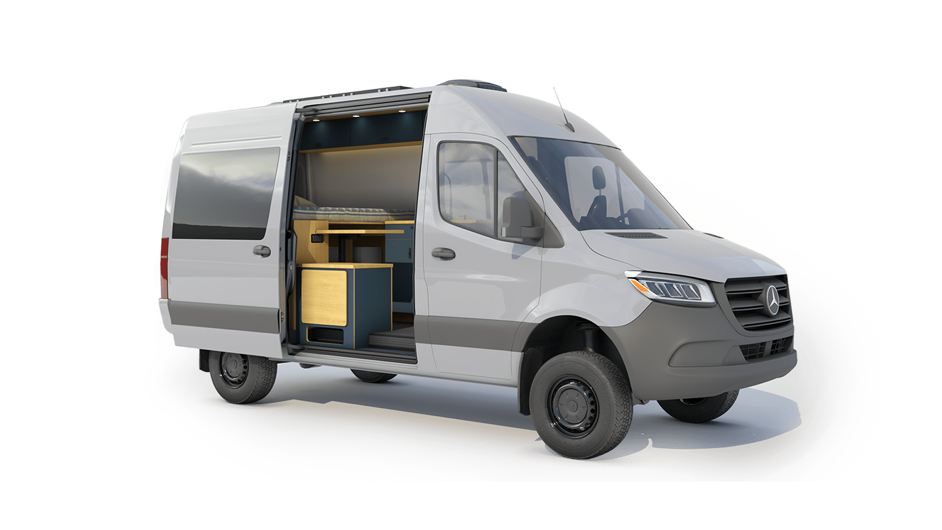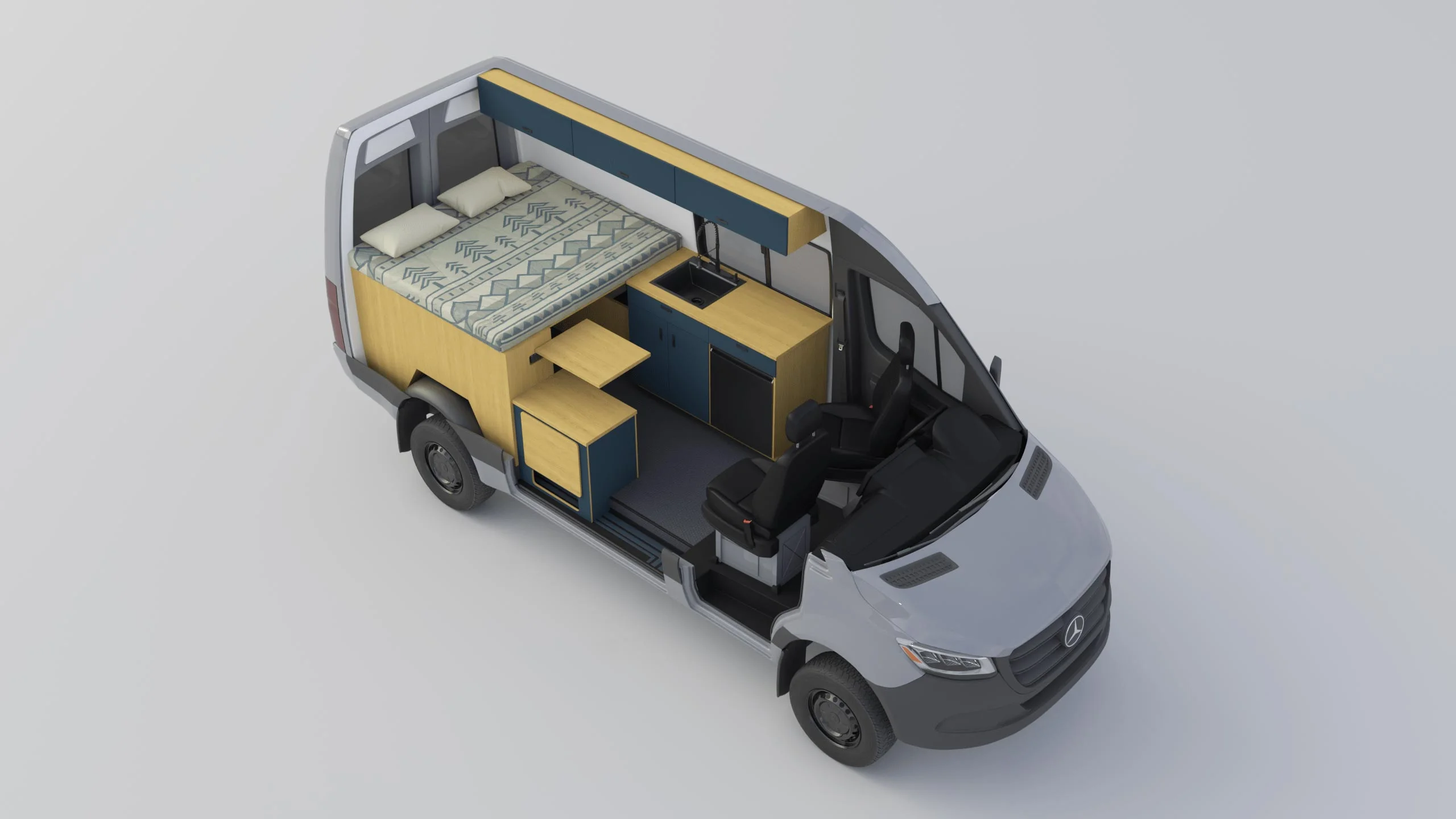 The Geotrek Albatross layout is designed for optimal space efficiency, featuring a functional kitchen, convertible bed system, and ample gear storage for extended adventures. Built on the AWD Sprinter 144 chassis, it offers a perfect balance of comfort and capability for off-grid travel and vanlife enthusiasts.