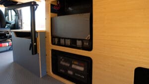 The Geotrek Bear Peak combines an Espar diesel heater for quick, efficient warmth with a rear MaxxAir fan for high-flow ventilation and humidity control, plus a Lizard Skin thermal barrier to stabilize cabin temps—so you sleep better, cook without lingering odors, and stay comfortable off-grid in any season.